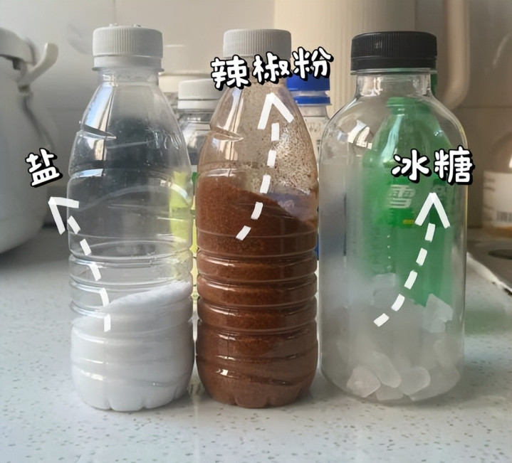 就比如,这种塑料瓶,婆婆会用它们装一些调味料,放在厨房刚刚好。