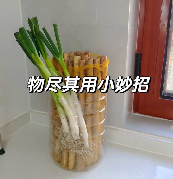 把水桶或者油桶上半部分剪掉后,只留下下半部分,用来装大葱、山药刚刚好。