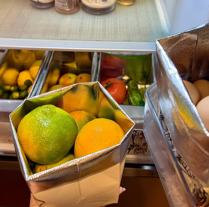 反观我婆婆呢?直接把奶茶袋子折叠起来,放进冰箱里面,这不就是收纳盒吗?